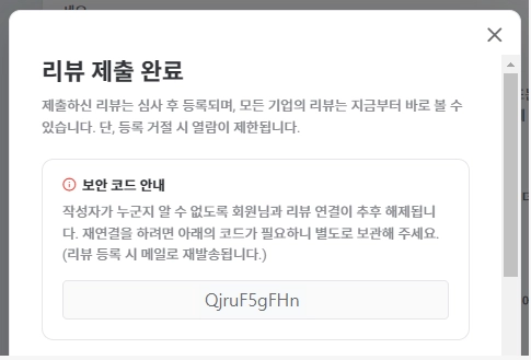 보안코드를 캡쳐해두지 않았다면, 계정 이메일로도 한 번 더 보내드렸으니 메일을 찾아봐주세요.